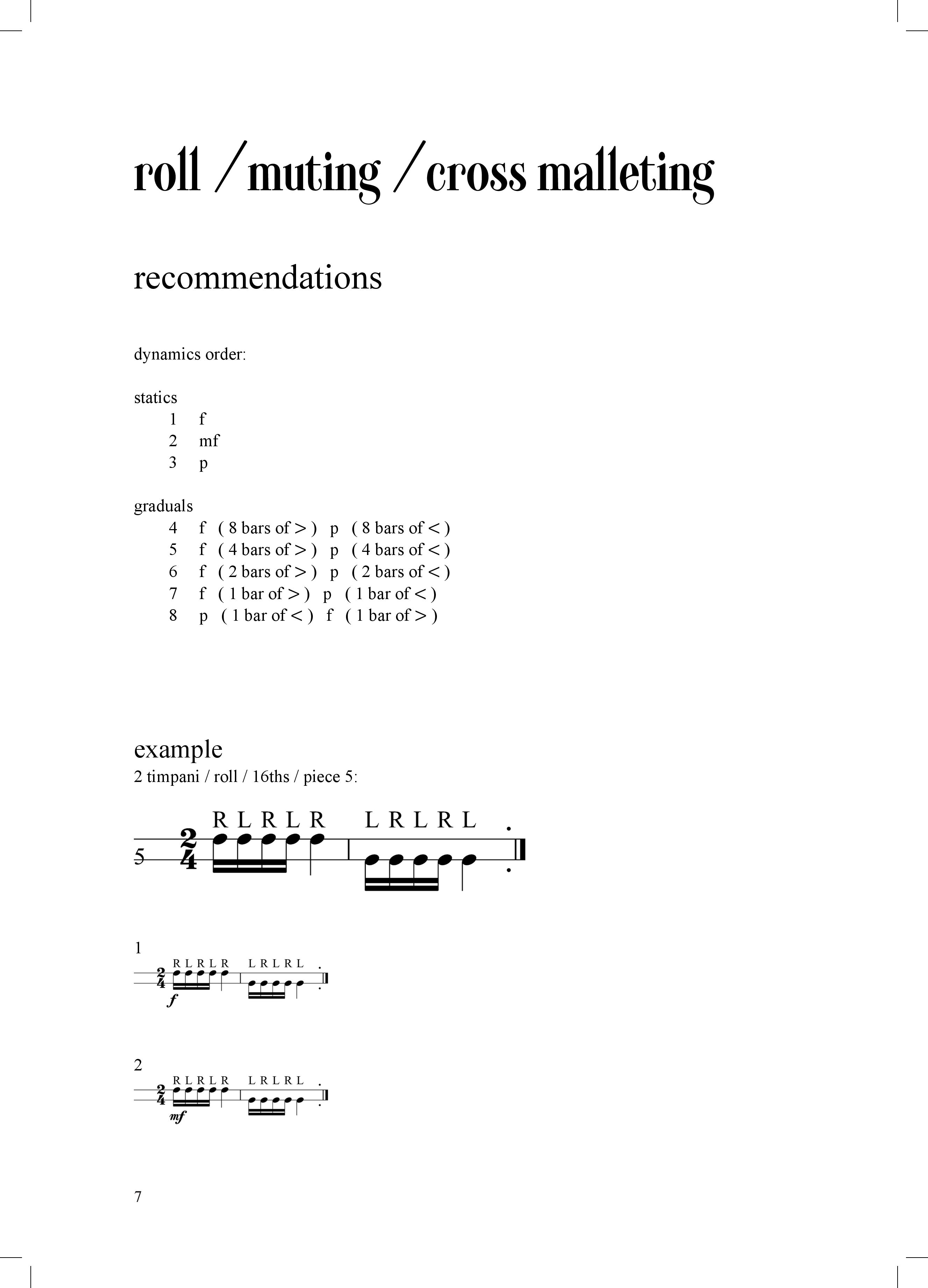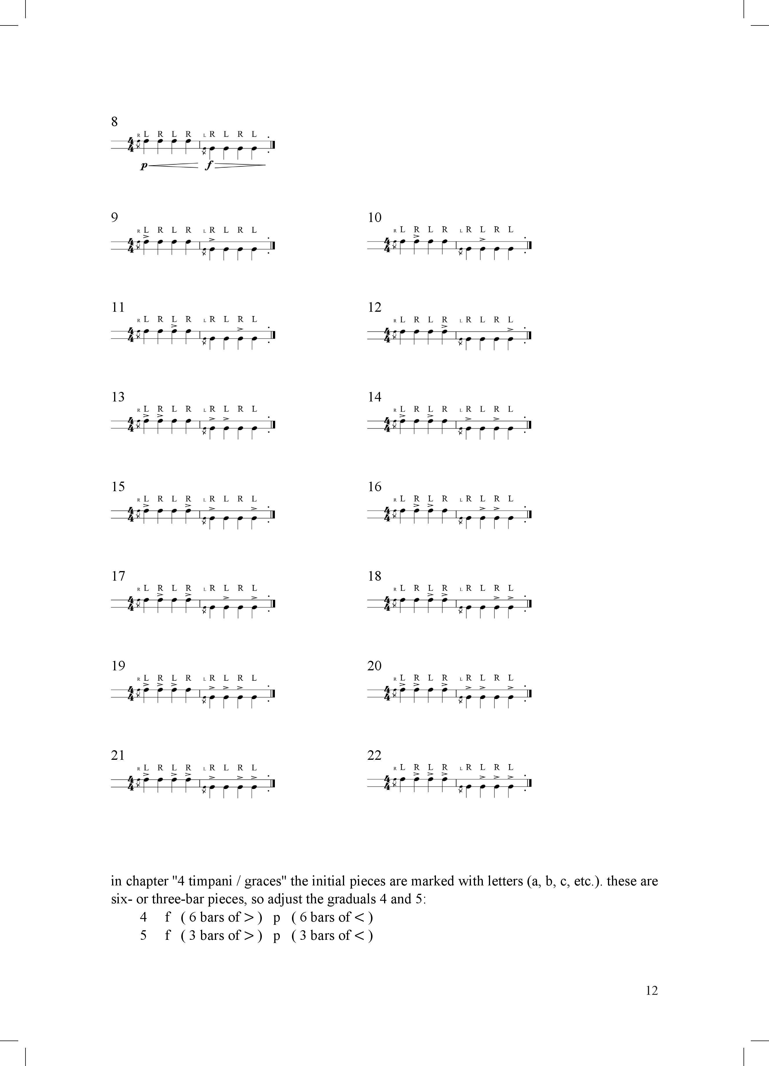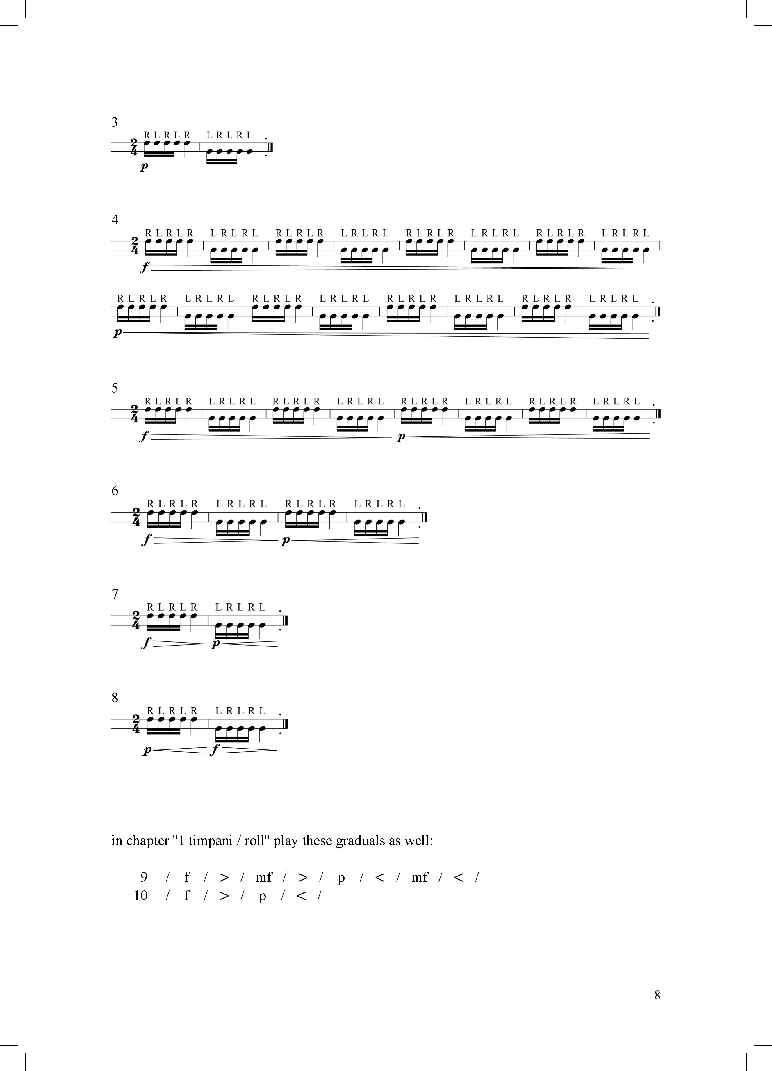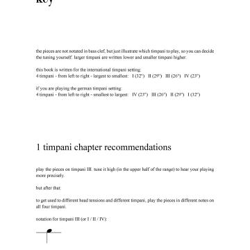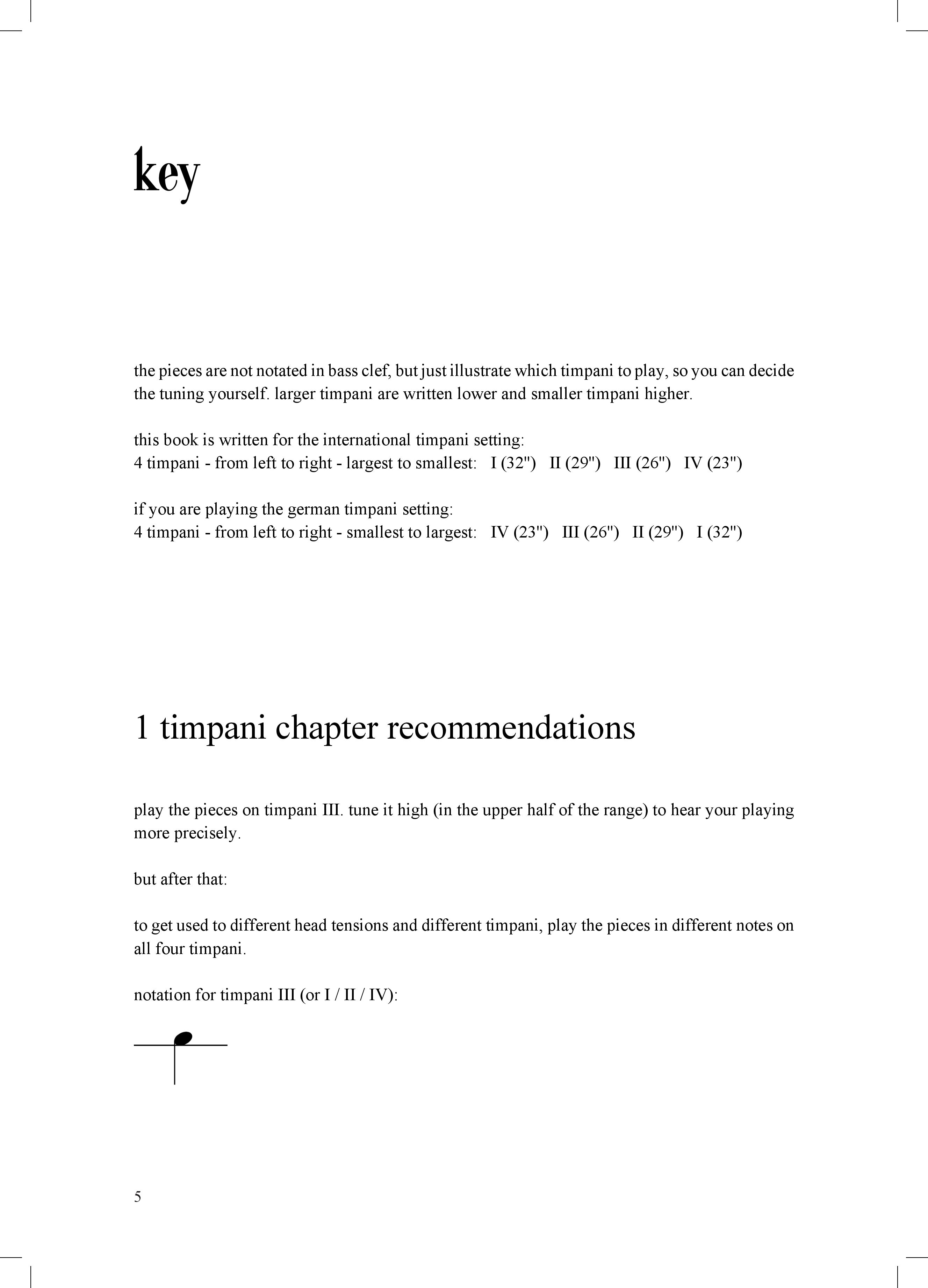 the book covers all the essential technical areas of traditional (non-experimental) timpani playing. it is intended for daily technique practice. it is suitable for all levels of timpani players, from beginners to professionals. the exercises are not arranged by level of difficulty, but by specific areas. choose the order that is appropriate for your current knowledge or interests.