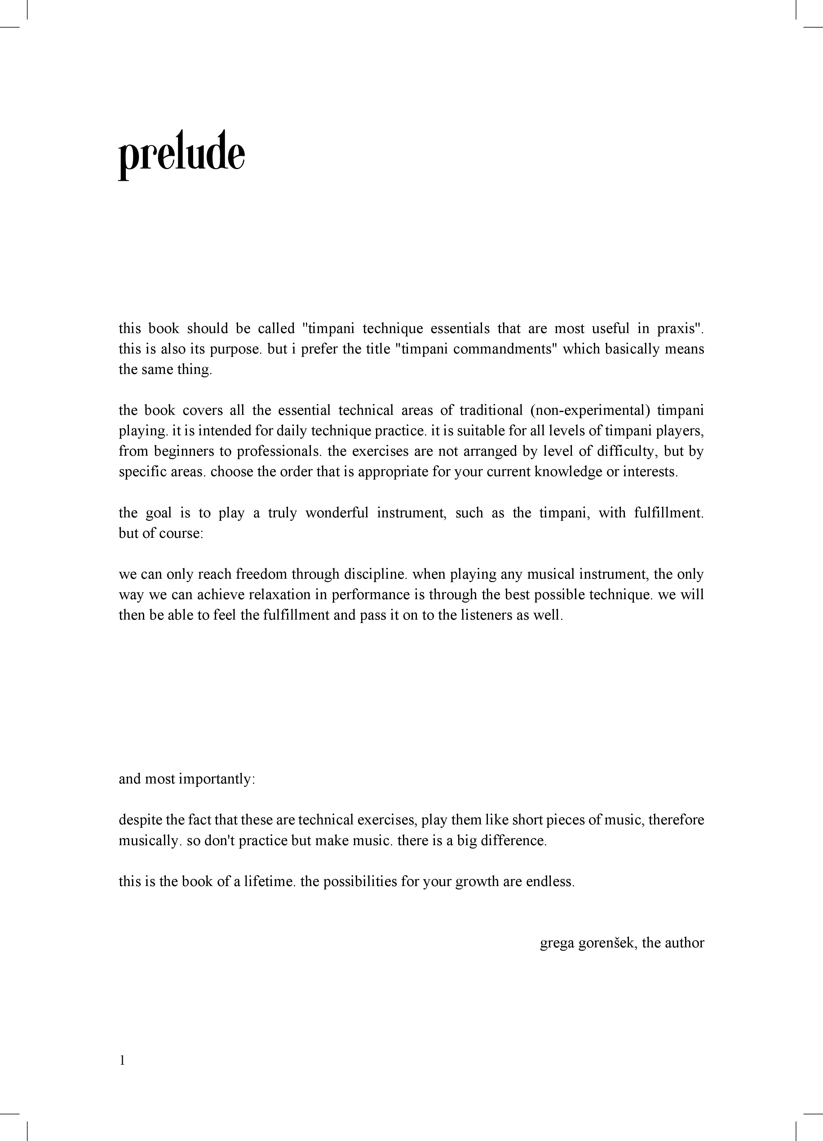 this book should be called ''timpani technique essentials that are most useful in praxis''. this is also its purpose. but i prefer the title "timpani commandments" which basically means the same thing.