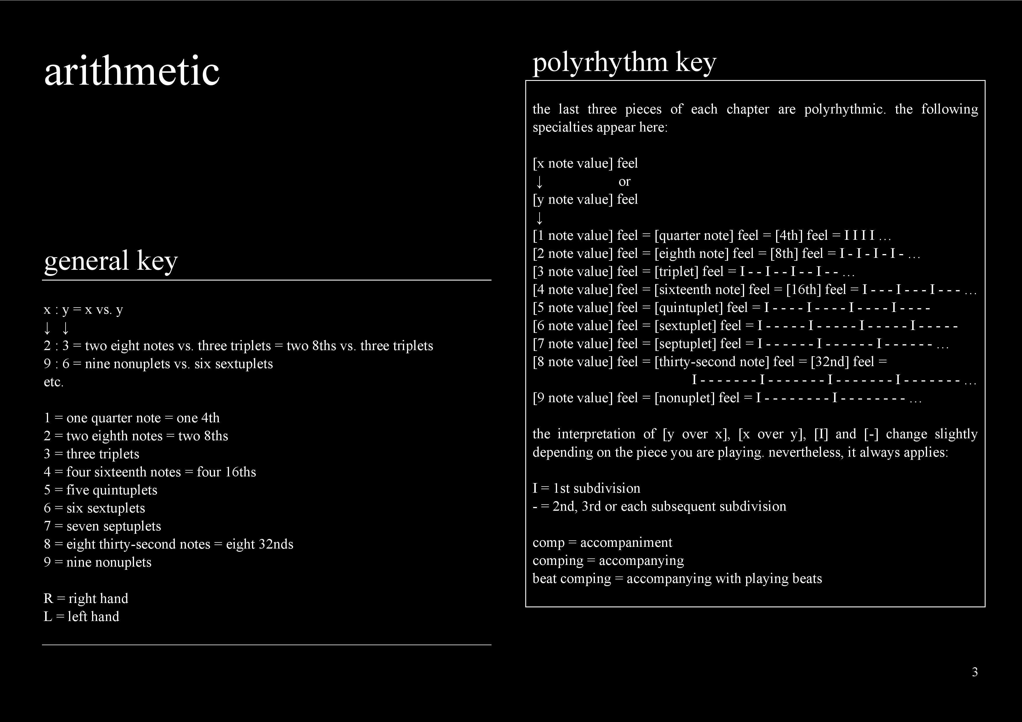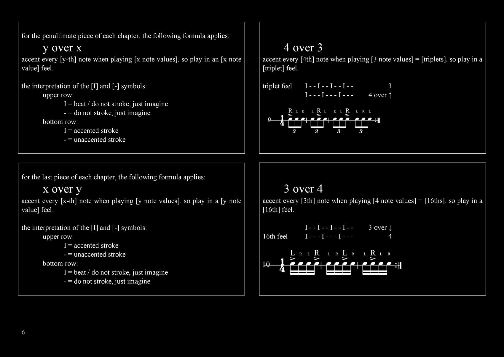 namenjena je dnevni vaji tehnike. primerna je za vse stopnje glasbenikov, ki igrajo mali boben ali komplet bobnov, od začetnikov do profesionalcev. vaje niso razvrščene po težavnosti, ampak po specifičnih področjih. izberite vrstni red, ki je najprimernejši vašemu trenutnemu znanju ali interesom.