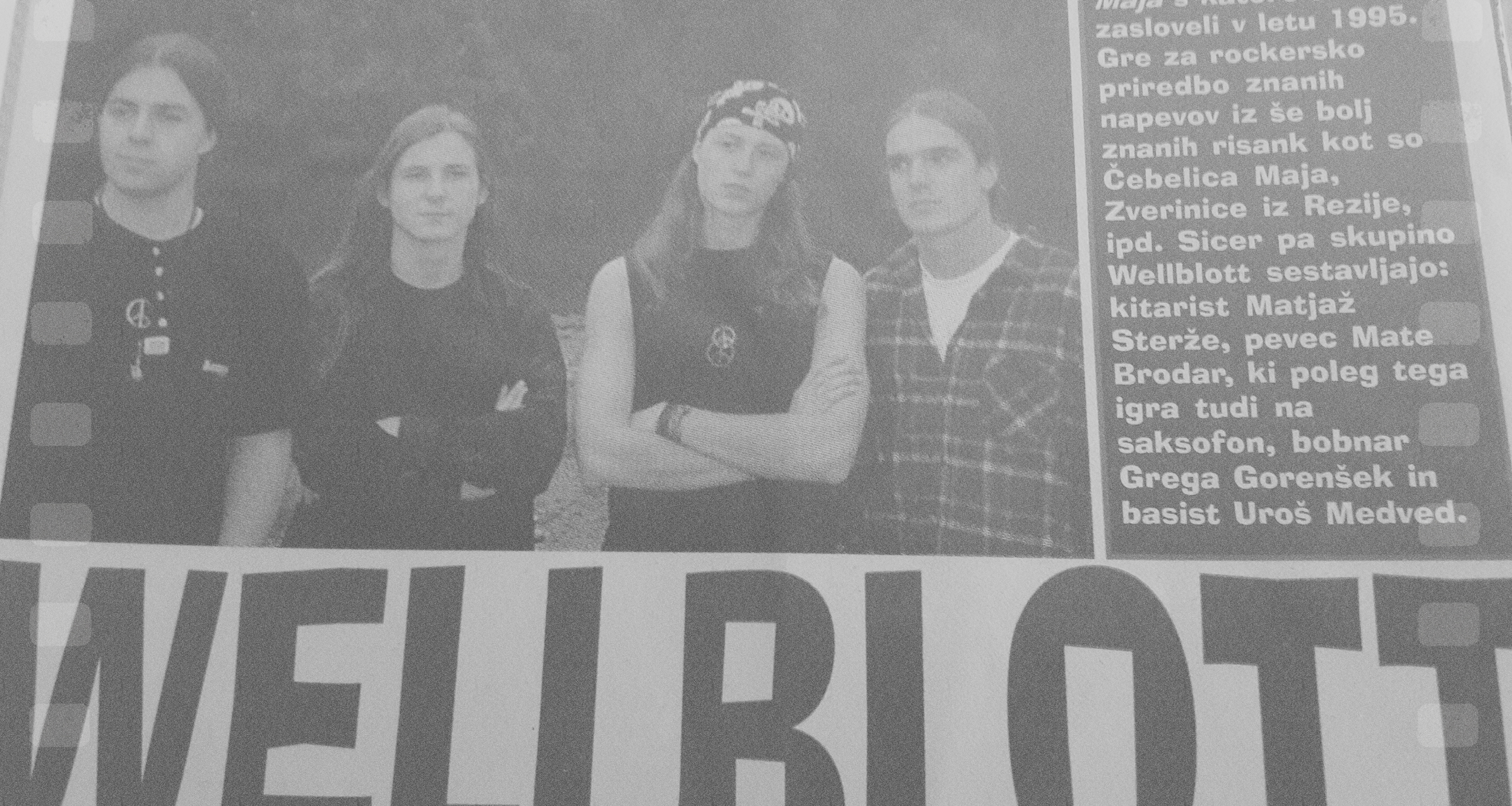 the band was founded in 1992 by guitarist and author matjaž sterže, who was the only member in all its variants until the end of the band's active existence. in addition to matjaž, the original band was created and played by bassist uroš medved ux (1992 to 2004), drummer timotej pečoler and singer and guitarist grega zupančič (both 1992 to 1996). in this line-up and with members still in their teens, the group also recorded the first studio recordings in switzerland, and completed the first album with a new singer, mate brodar (mate bro). the album "ista laž" was released in 1994 and served the group's considerable popularity at the regional level. when the band completely unexpectedly released the song "čebelica maja" on one of the slovenian compilations, a new side of the story turned and the band became popular outside the region as well and began to play concerts all over slovenia, as guests at the concerts of other legendary bands such as also with solo concerts. zupančič and pečoler left wellblott then, and grega gorenšek came for drums.